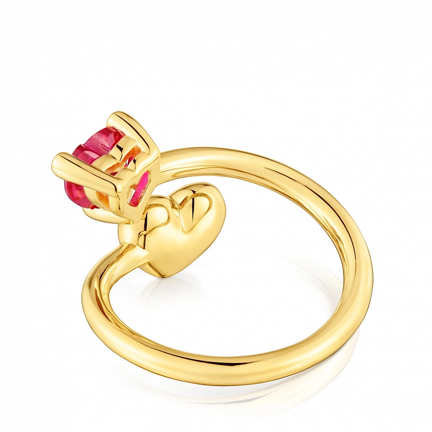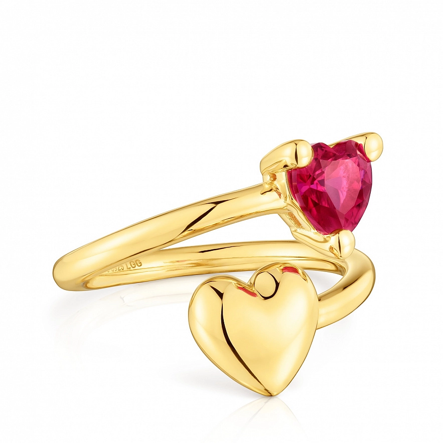 Кольцо TOUS Garden of Love LGG из серебра 925 пробы с покрытием Vermeil с мотивом сердца и синтетическим рубином огранки в форме сердца. Размер камня: 6 мм. Размер мотива: 8 мм. Примечание: изделие создано с использованием лабораторно выращенных драгоценных камней.
