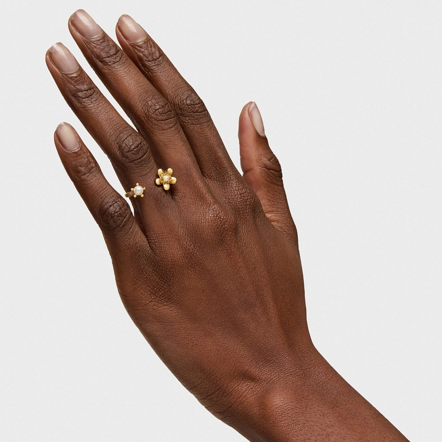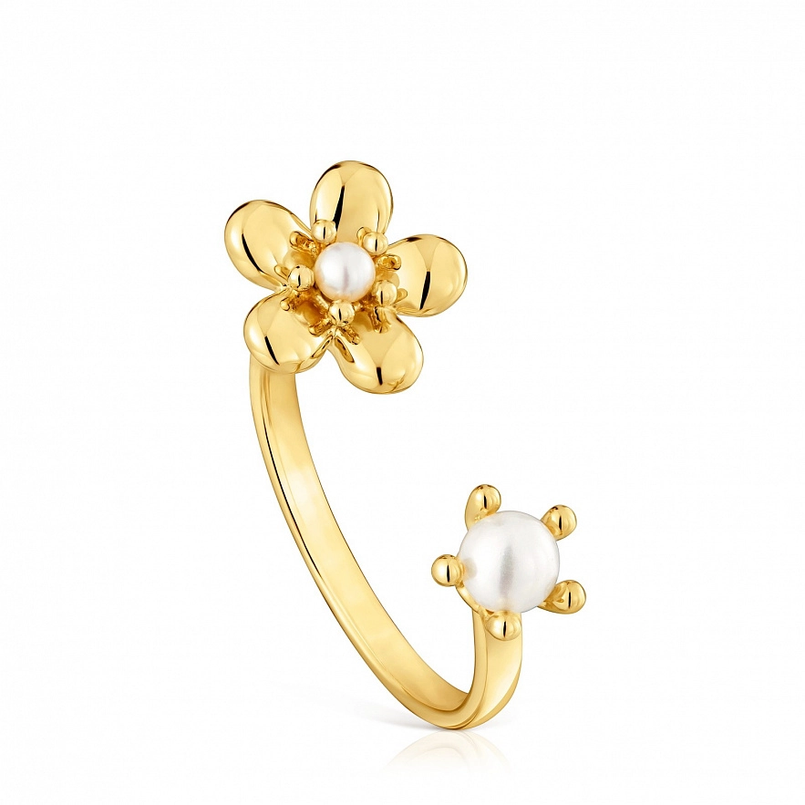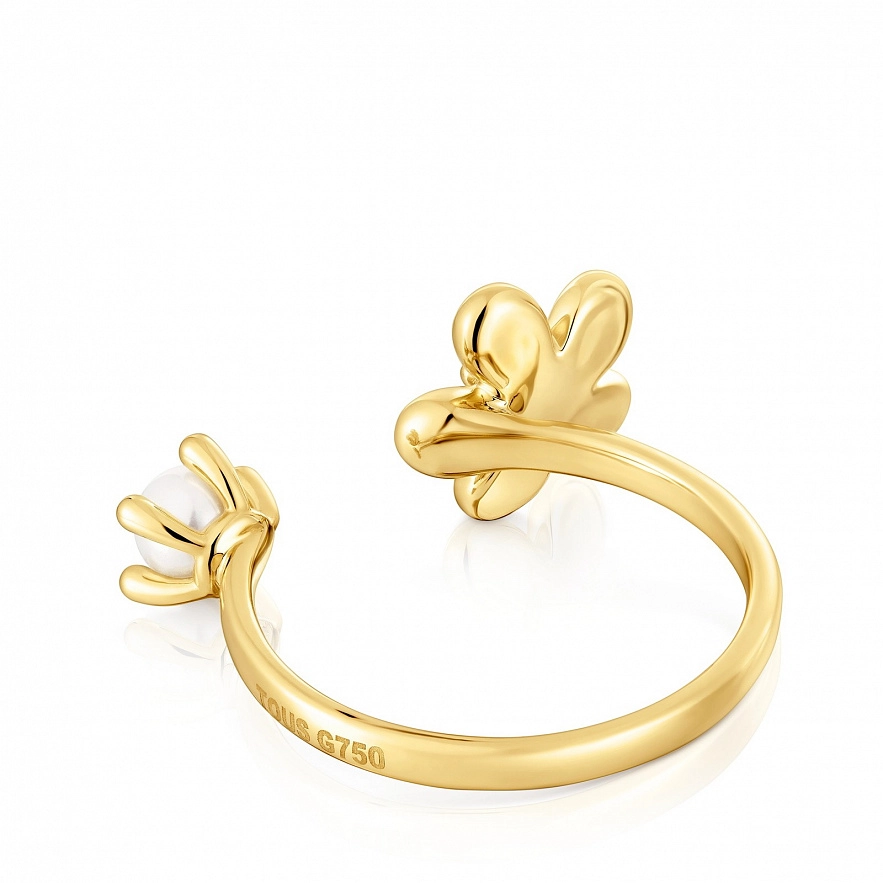 Кольцо TOUS Daisy из желтого золота 18 карат, цветочный мотив и культивированный пресноводный жемчуг. Размер мотива: 6 мм.