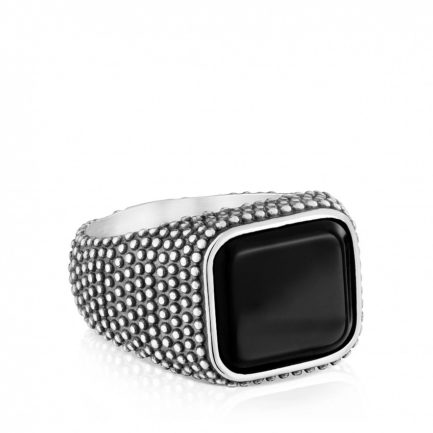 Кольцо TOUS Man из серебра 925 пробы с ограненным ониксом. Размер камня: 15 мм. Толщина кольца: 1,8 мм.
