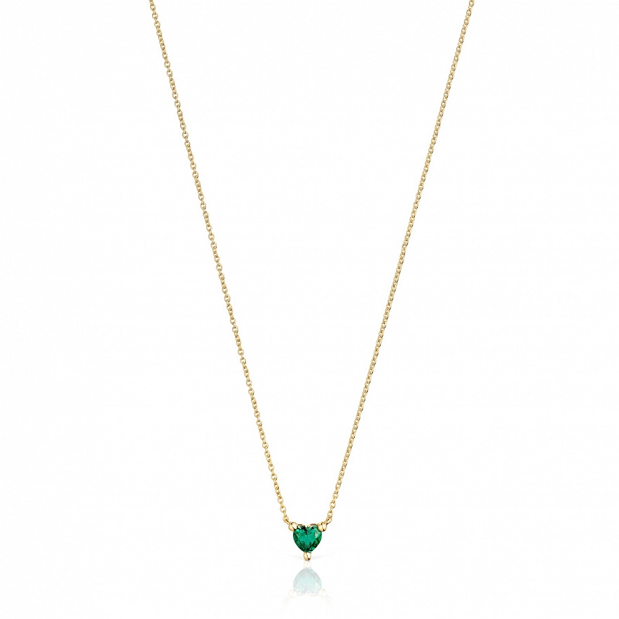 Колье TOUS Garden of Love LGG из серебра 925 пробы с покрытием Vermeil и синтетическим изумрудом огранки в форме сердца. Размер драгоценного камня: 6 мм. Общая длина колье: 42 см. Застежка - пружинное кольцо. Примечание: изделие создано с использованием лабораторно выращенных драгоценных камней.