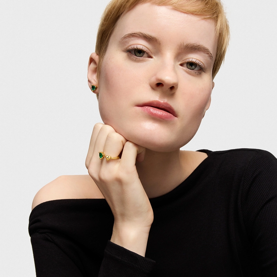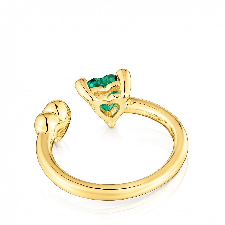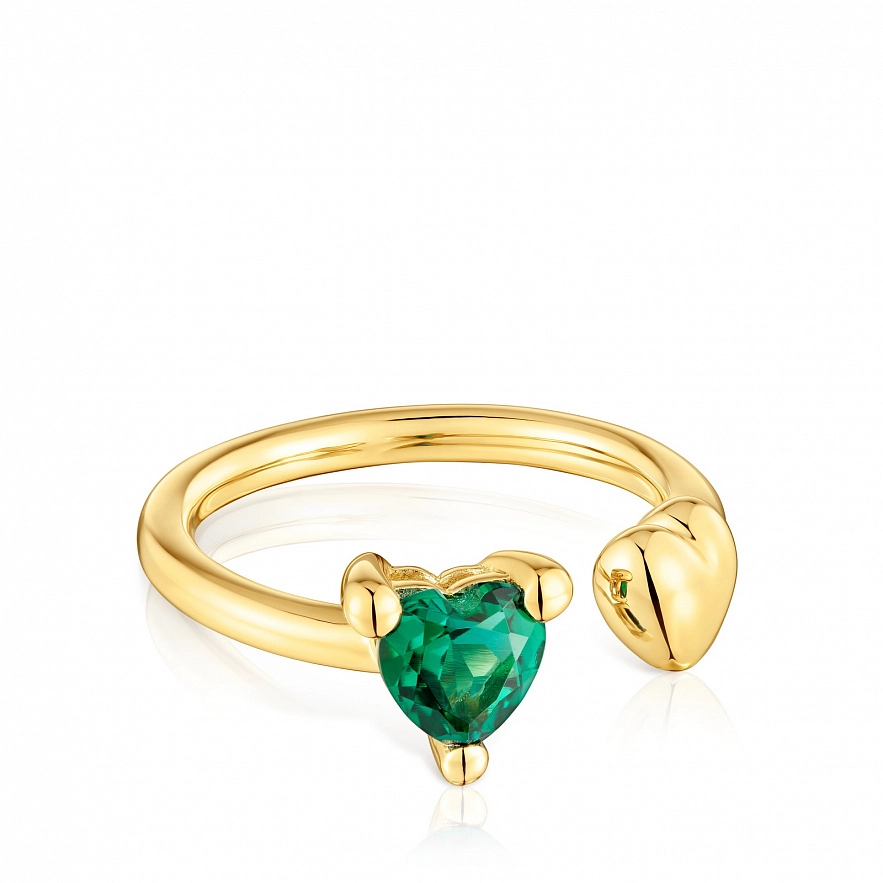 Кольцо TOUS Garden of Love LGG из серебра 925 пробы с покрытием Vermeil с мотивом сердца и синтетическим изумрудом огранки в форме сердца. Размер камня: 6 мм. Размер мотива: 6 мм. Примечание: изделие создано с использованием лабораторно выращенных драгоценных камней.
