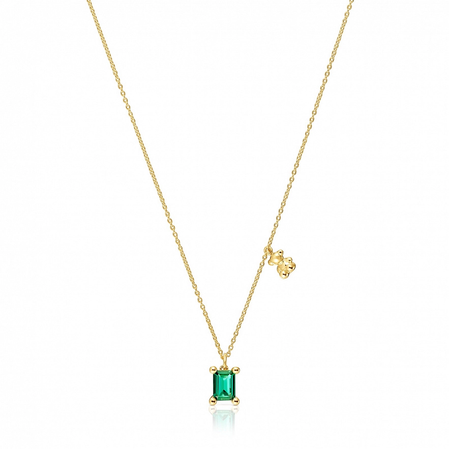 Колье TOUS Bold Bear LGG из серебра 925 пробы с покрытием Vermeil и ограненным восьмигранным синтетическим зеленым изумрудом. Размер драгоценного камня: 8 мм. Размер мишки: 7 мм. Общая длина колье: 50 см. Застежка карабин. Примечание: Изделие создано с использованием лабораторно выращенных драгоценных камней.