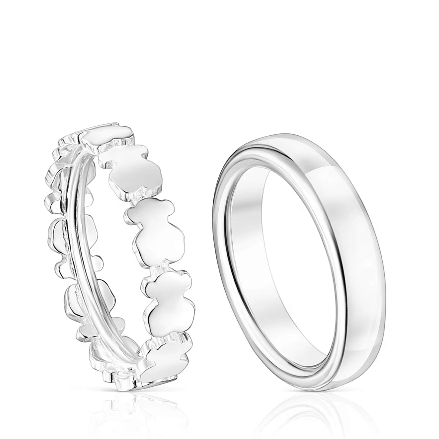 Набор из двух колец TOUS Straight из серебра 925 пробы: одно простое, шириной 2,6 мм, а другое с медвежатами 5,5 мм. Техника изготовления: литье.