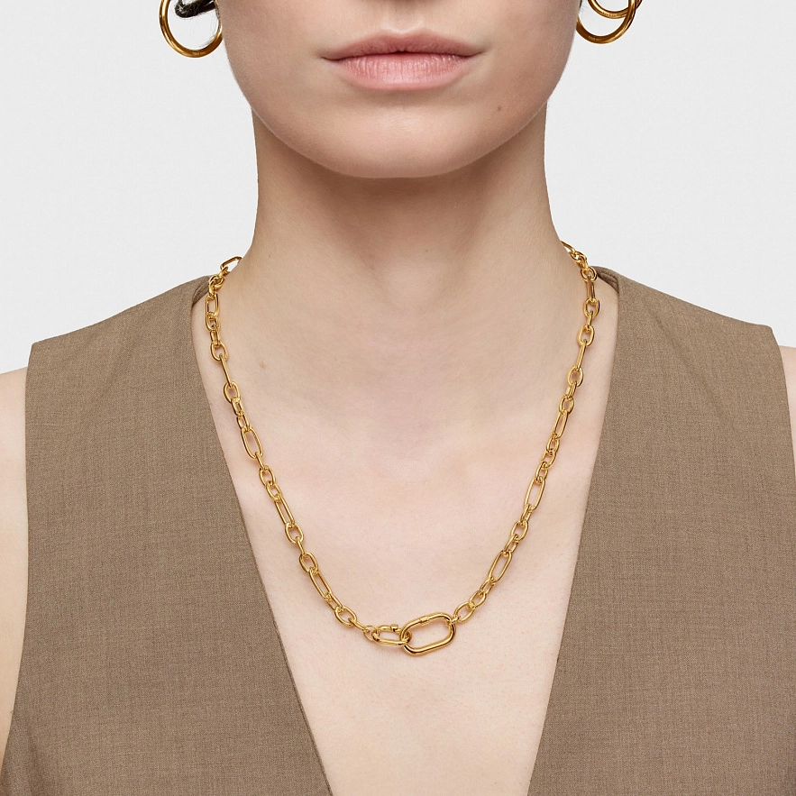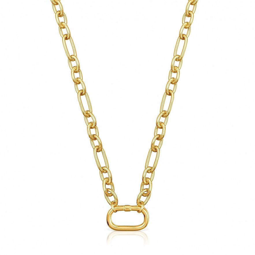 Колье TOUS Hold Oval из серебра 925 пробы с покрытием Vermeil и кольца-фиксатора. Размер кольца: 20 мм. Длина колье: 49 см. Застежка на кольцо. Примечание: персонализируйте этот дизайн с помощью кулонов, брелков или колец.