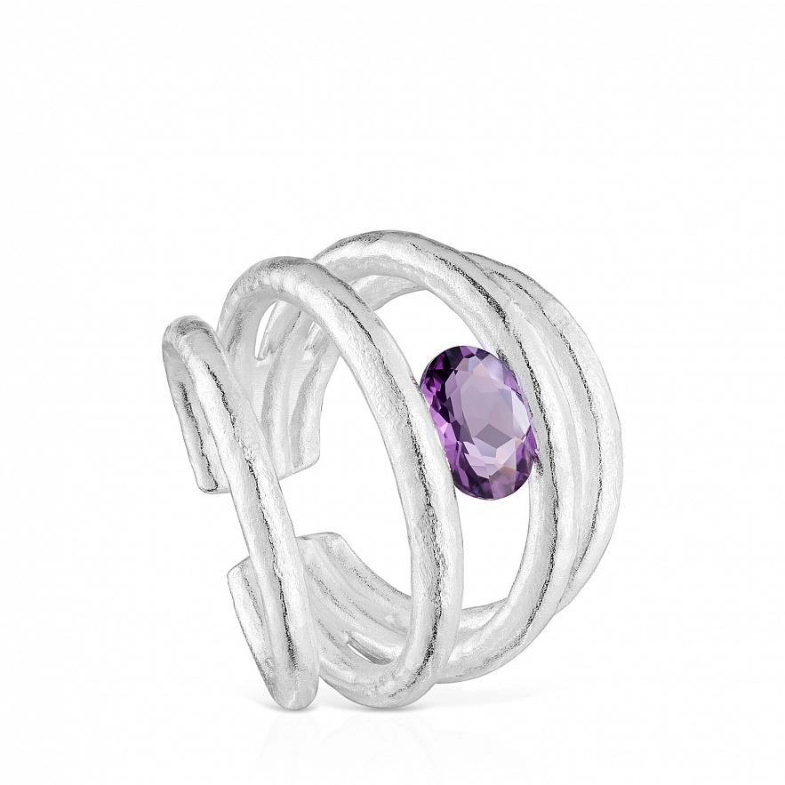 Кольцо TOUS Duna из серебра 925 пробы с ограненным овальным аметистом. Ширина кольца: 12,7 мм.