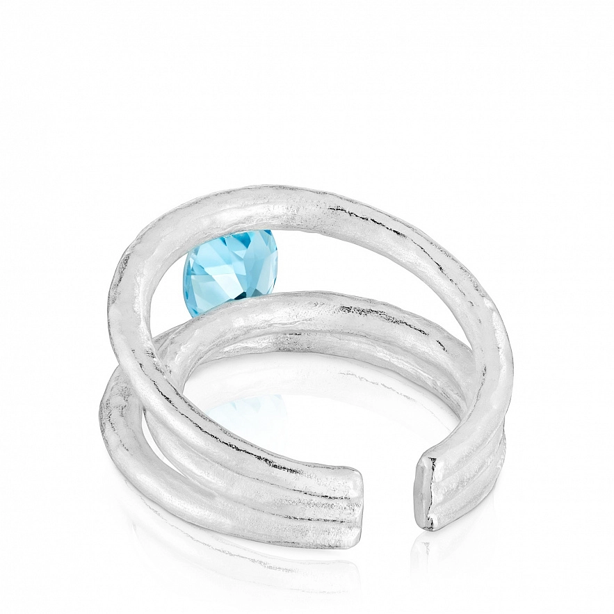 Кольцо TOUS Duna из серебра 925 пробы с ограненным овальным синим топазом. Ширина кольца: 12,7 мм.