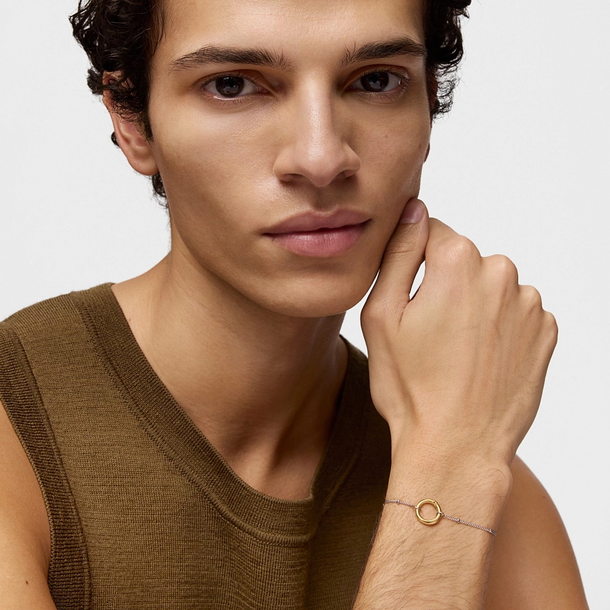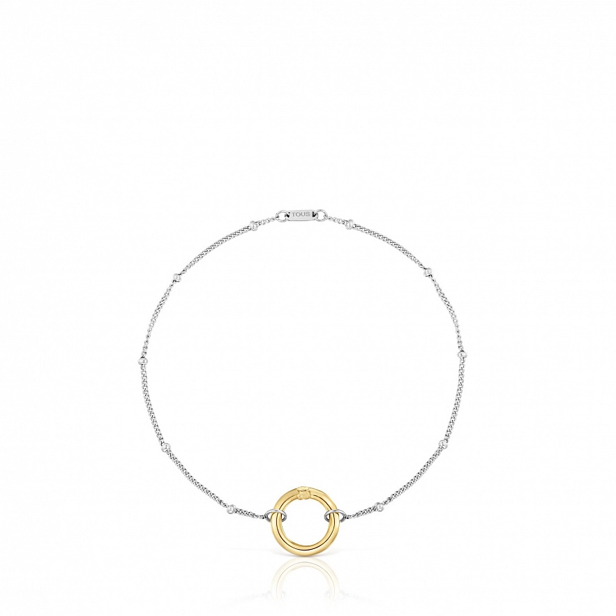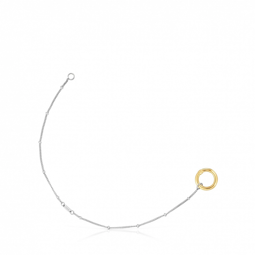 Браслет TOUS Hold из желтого золота 750 пробы с кольцом и стальной цепью с деталями. Размер кольца: 12 мм. Длина браслета: 17,5 см. Застежка на кольцо.