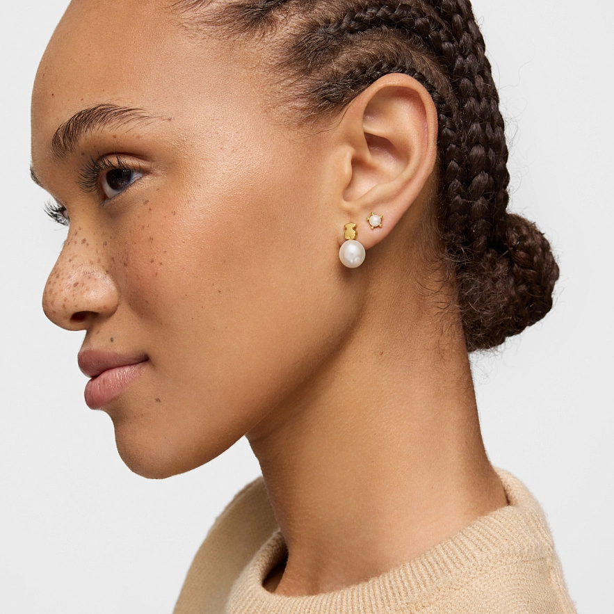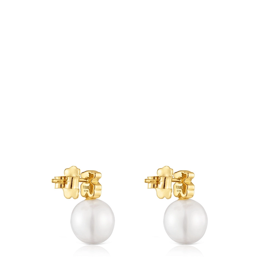 Серьги TOUS Sweet Dolls из 18-каратного желтого золота с мотивом мишки и культивированной пресноводной жемчужиной. Размер мишки: 6 мм. Размер культивированной жемчужины: 9 мм. Застежка-пусет.