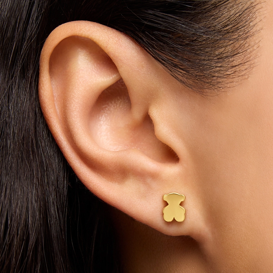Серьги TOUS Sweet Dolls из 18-каратного желтого золота. Размер мишки: 8 мм. Застежка-пусет.