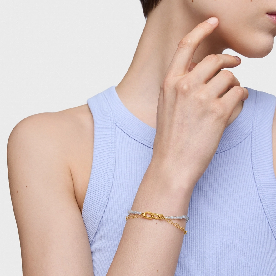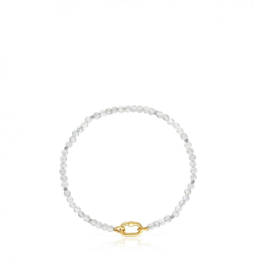 Браслет TOUS Hold Oval из желтого золота 18 карат с ограненным круглым лабрадоритом. Размер драгоценных камней: 3 мм. Размер кольца: 10 мм. Длина браслета: 17,5 см. Застежка кольца TOUS Hold Oval.