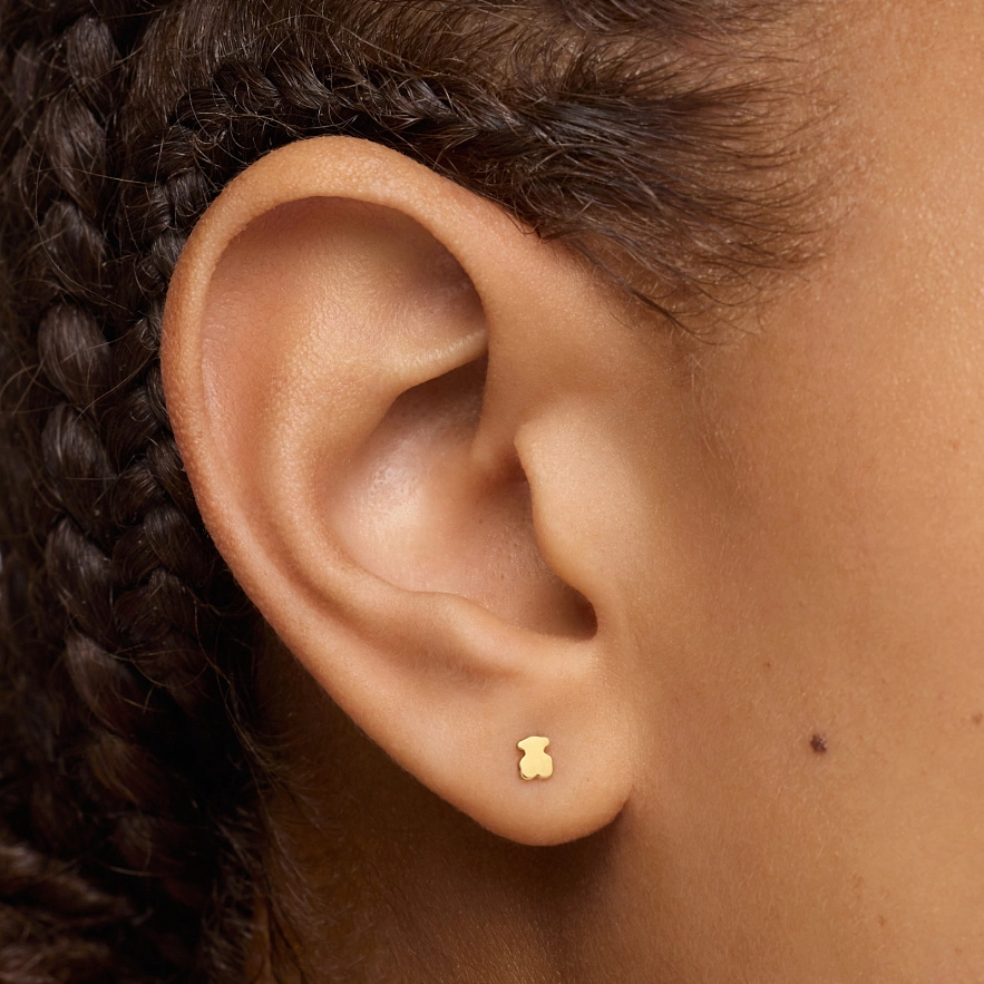 Серьги TOUS Basics из 14-каратного желтого золота с мотивом медвежонка. Размер мотива: 4 мм. Застежка-винт.