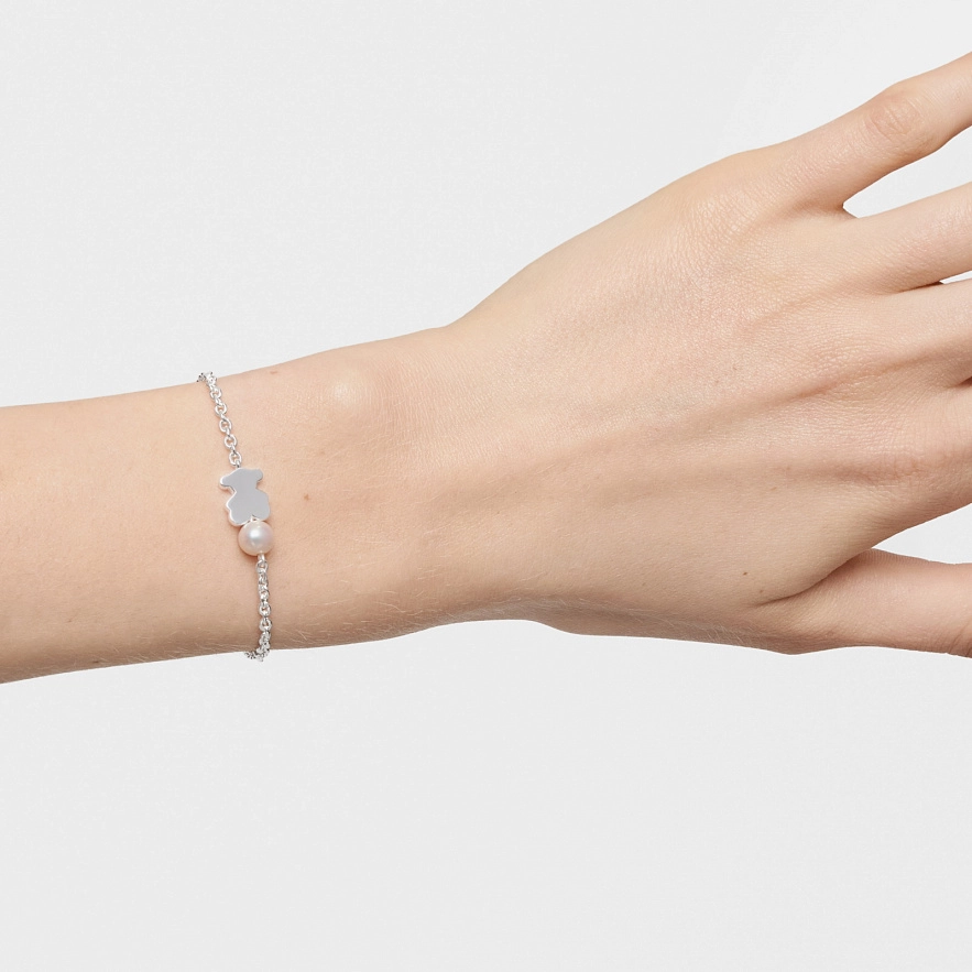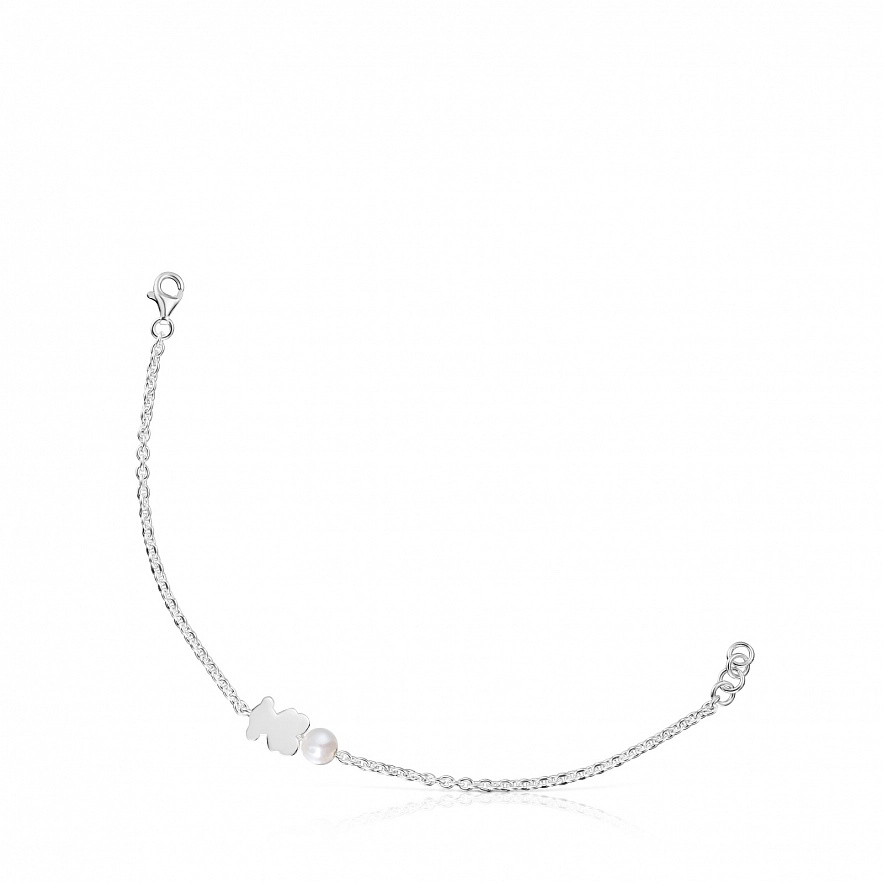 Браслет TOUS Sweet Dolls из серебра 925 пробы с мишкой и культивированной пресноводной жемчужиной. Размер мишки: 10 мм. Размер культивированного жемчуга: 6 мм. Длина браслета: 17,5 см. Застежка лобстер.