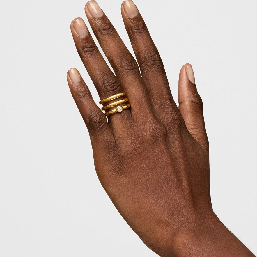 Кольцо TOUS Line LGD из серебра 925 пробы с покрытием Vermeil и бриллиантом 0,10 карата. Качество бриллианта: G/VS. Примечание: изделие создано с использованием лабораторных бриллиантов.