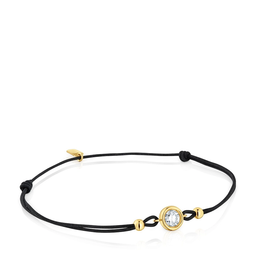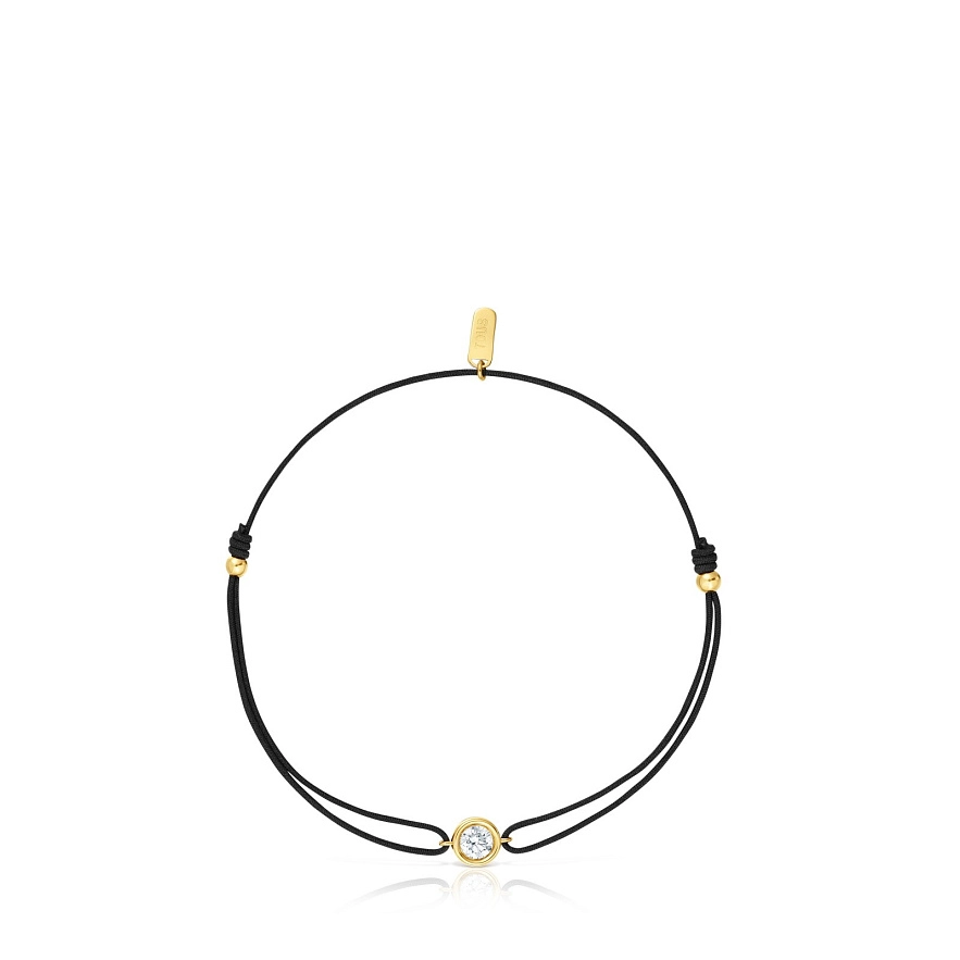 Браслет TOUS Line LGD черного цвета из нейлона с мотивами из серебра 925 пробы с покрытием Vermeil и бриллиантом 0,36 карата. Качество бриллианта: G/VS. Застежка-слайдер. Примечание: Изделие создано с бриллиантами, выращенными в лаборатории.