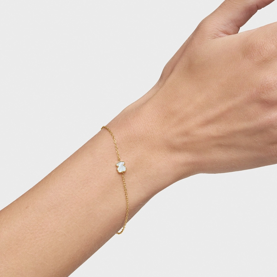 Браслет TOUS XXS из желтого золота 14 карат и перламутра в форме мишки. Длина браслета: 17 см. Застежка-лобстер.