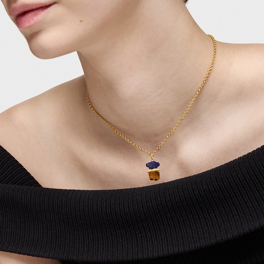 Кулон TOUS Sweet Dolls из серебра 925 пробы с покрытием Vermeil , с содалитом и тигровым глазом в форме мишки. Размер подвески: 16 мм. Это изделие не включает в себя цепочку.