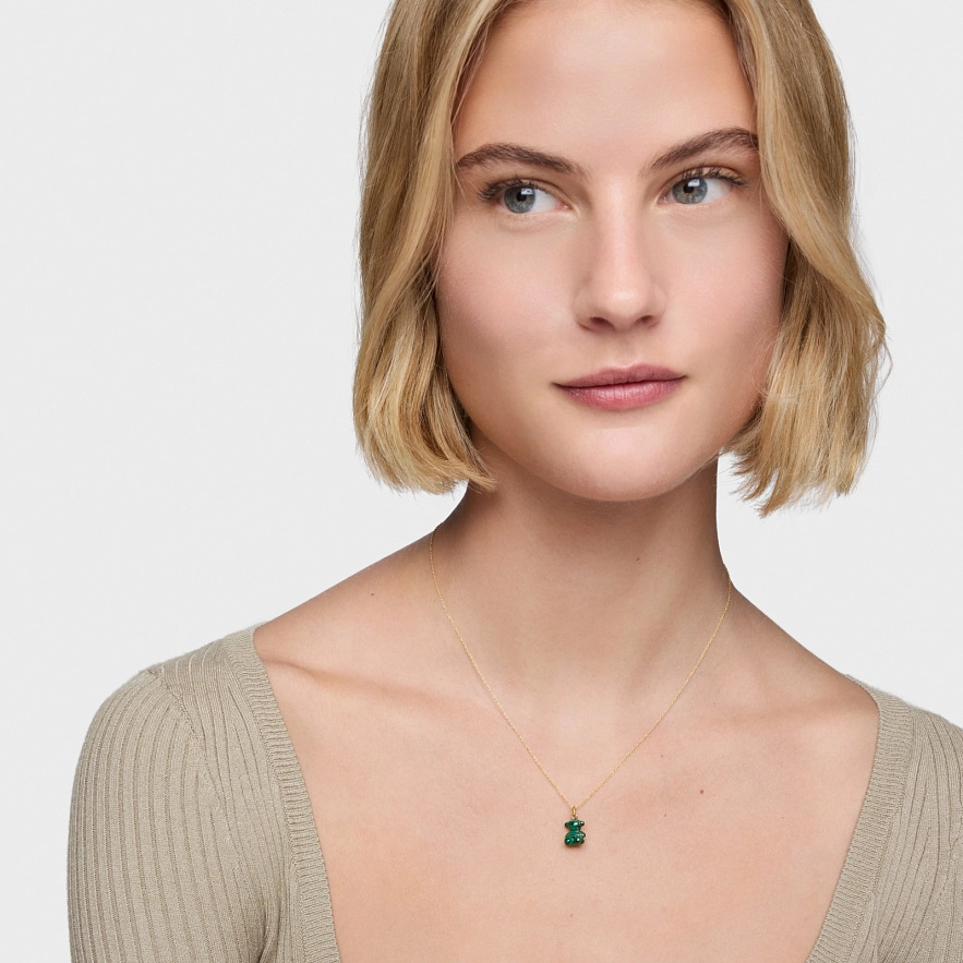 Кулон TOUS Bold Bear из желтого золота 14 карат с малахитом в форме мишки. Размер подвески: 11 мм. Это изделие не включает в себя цепочку.
