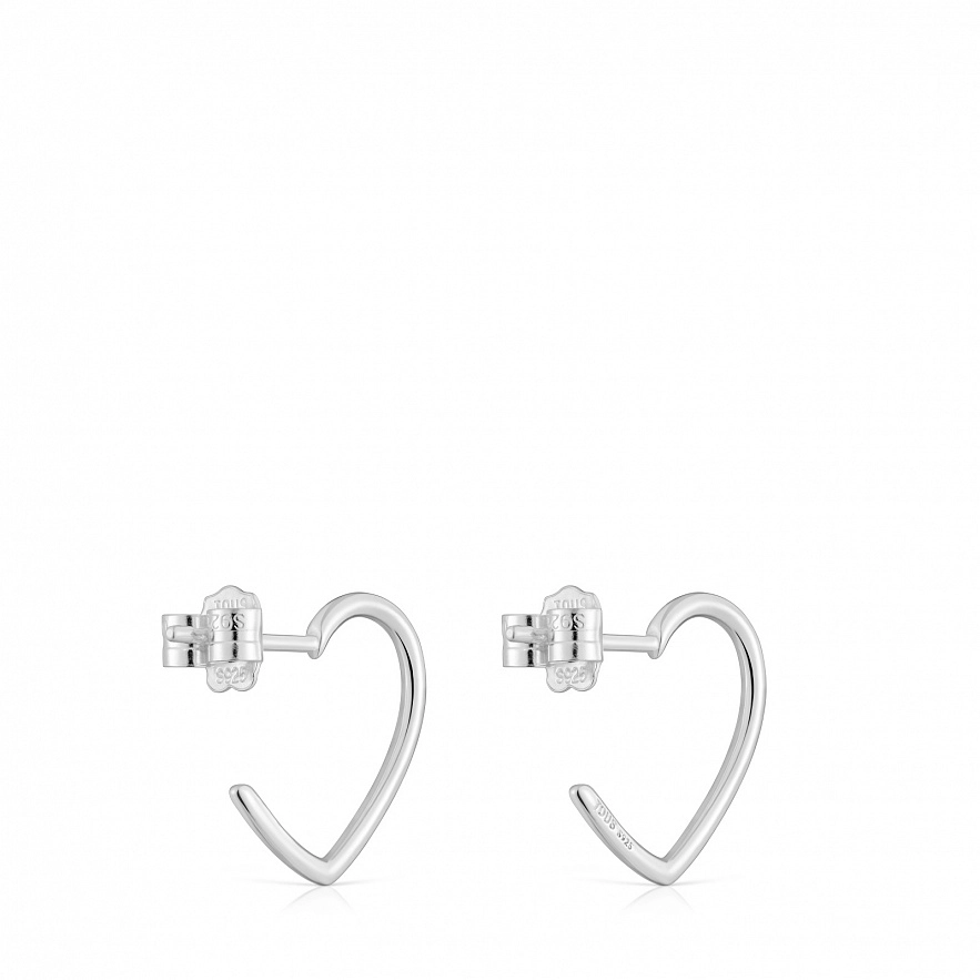 Серьги-кольца TOUS New Silueta из серебра 925 пробы в форме сердца. Размер сережек: 15 мм.
