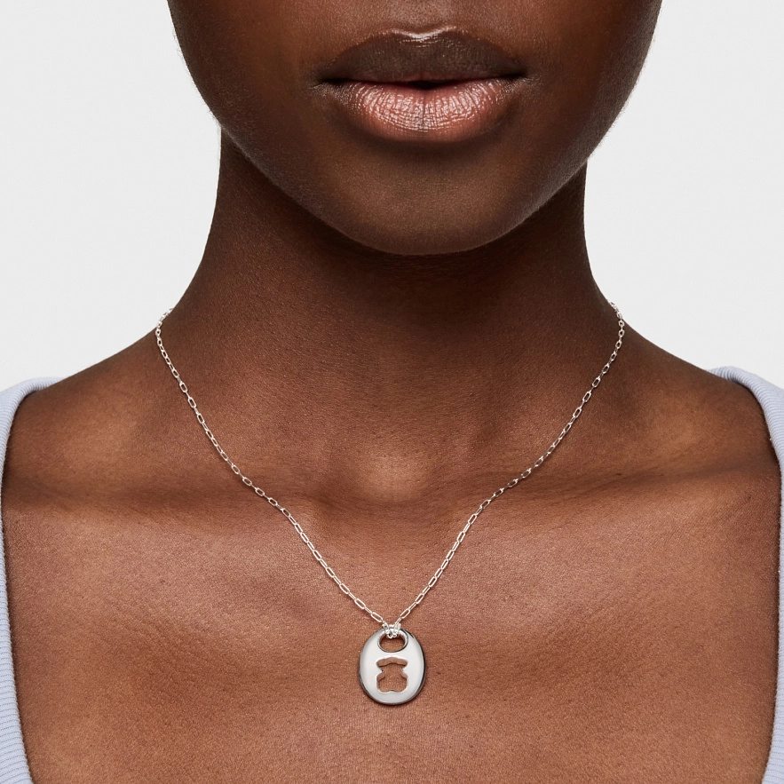 Колье TOUS Calabrote Bear из серебра 925 пробы с высеченным мотивом медвежонка на кулоне. Размер подвески: 22 мм. Длина колье: 45 см. Застежка - пружинное кольцо.
