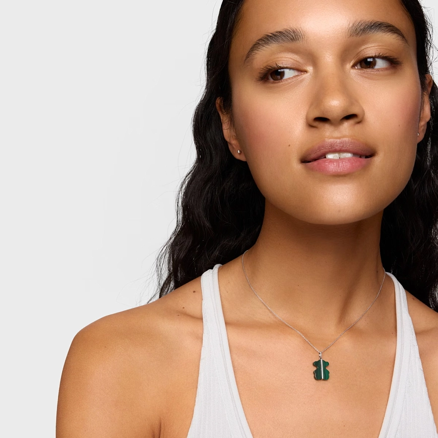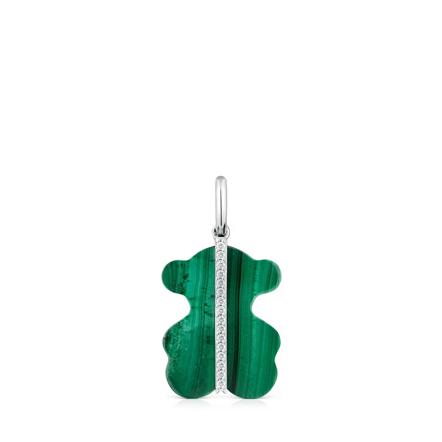 Кулон TOUS Sweet Dolls из 14-каратного белого золота с бриллиантами 0,04 карата и малахитом в форме мишки. Качество бриллиантов: H/SI. Размер кулона: 16 мм. Цепочка к этому изделию не прилагается.