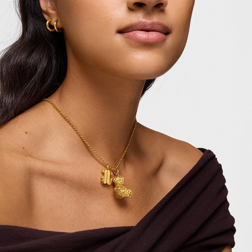 Кулон TOUS Bold Bear из серебра 925 пробы с покрытием Vermeil и ажурными мотивами. Размер кулона: 26 мм. Это изделие не включает цепочку.