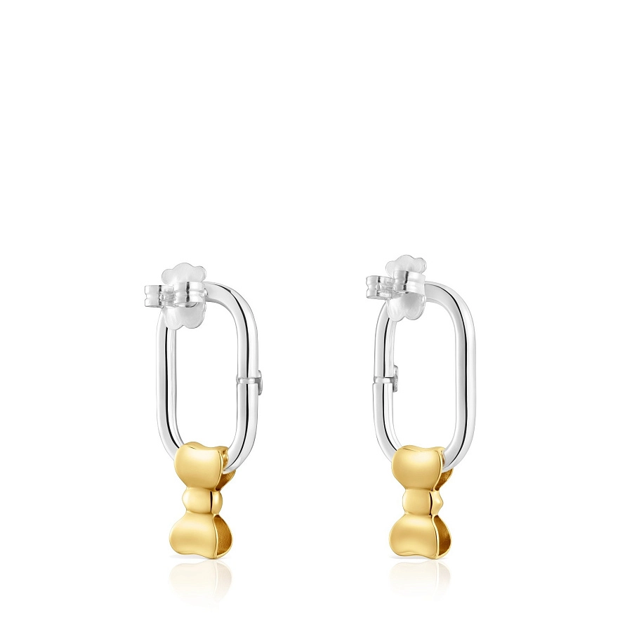 Серьги TOUS из серебра 925 пробы с покрытием Vermeil и подвесками-бантиками. Размер бантика: 10 мм. Размер сережек: 35 мм.