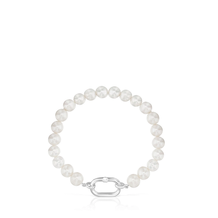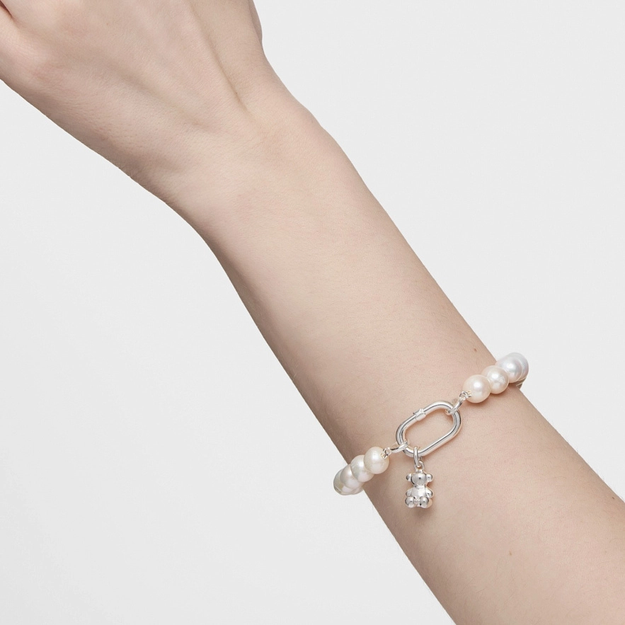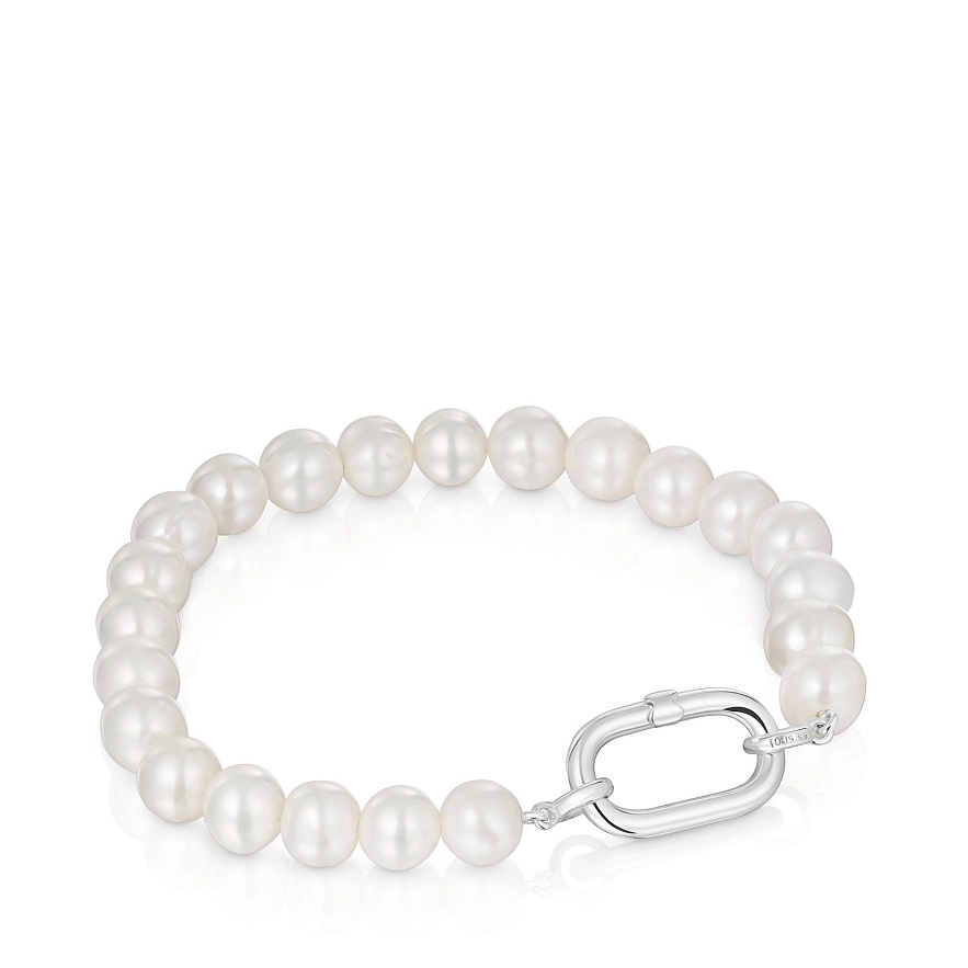 Браслет TOUS Hold Oval с кольцом из серебра 925 пробы и культивированными пресноводными жемчужинами. Размер кольца: 20 мм. Длина браслета: 19,5 см. Застежка в виде кольца. Примечание: персонализируйте этот дизайн с помощью кулонов, брелоков или колец.
