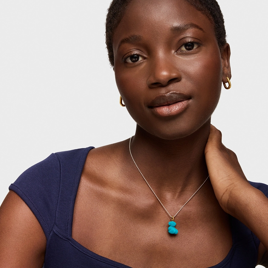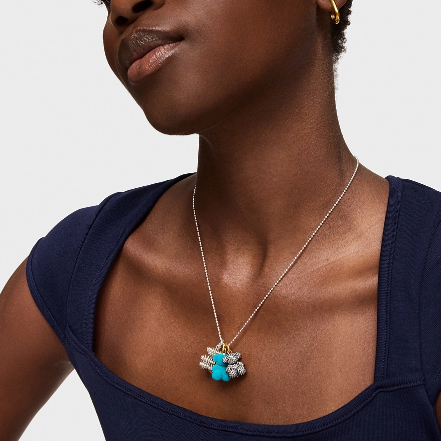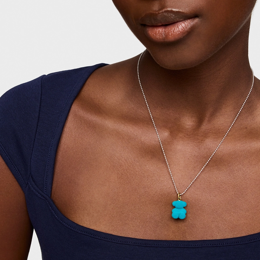 Кулон TOUS Bold Bear из бархата бирюзового цвета с кольцом из серебра 925 пробы с покрытием Vermeil и нержавеющей сталью. Размер кулона: 16 мм. В комплект к этому изделию цепочка не входит.