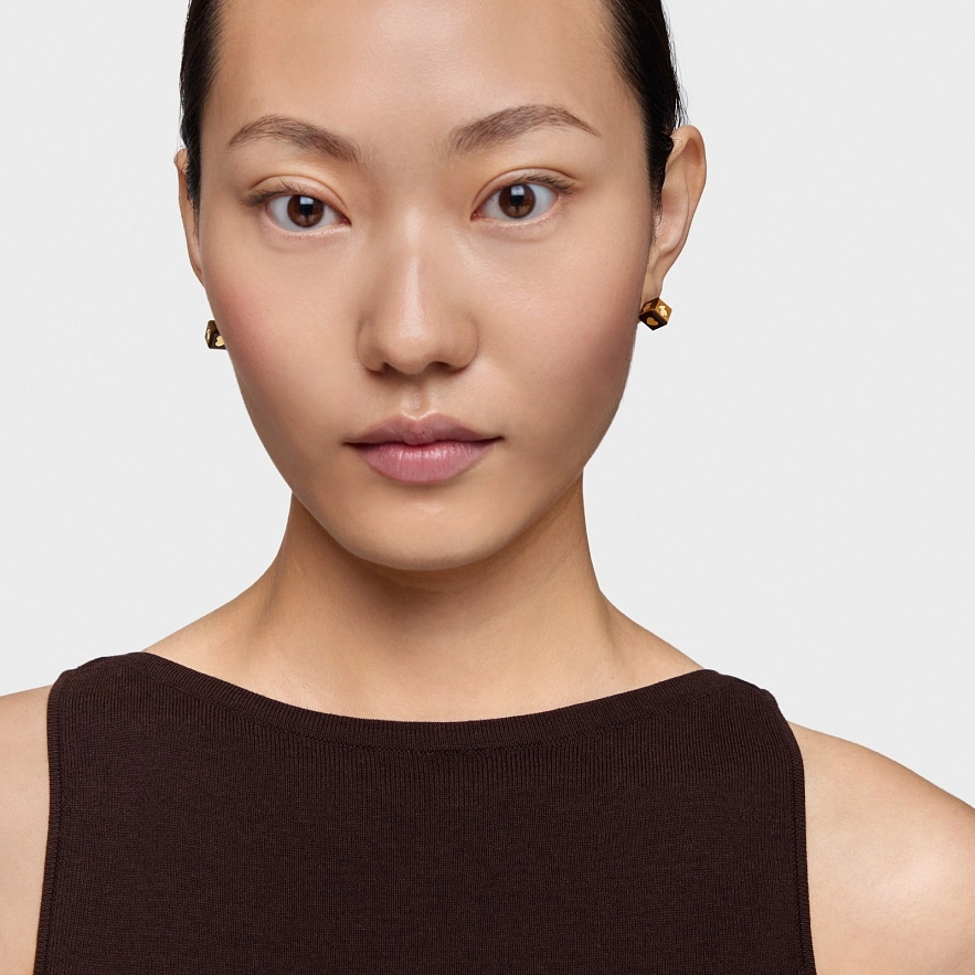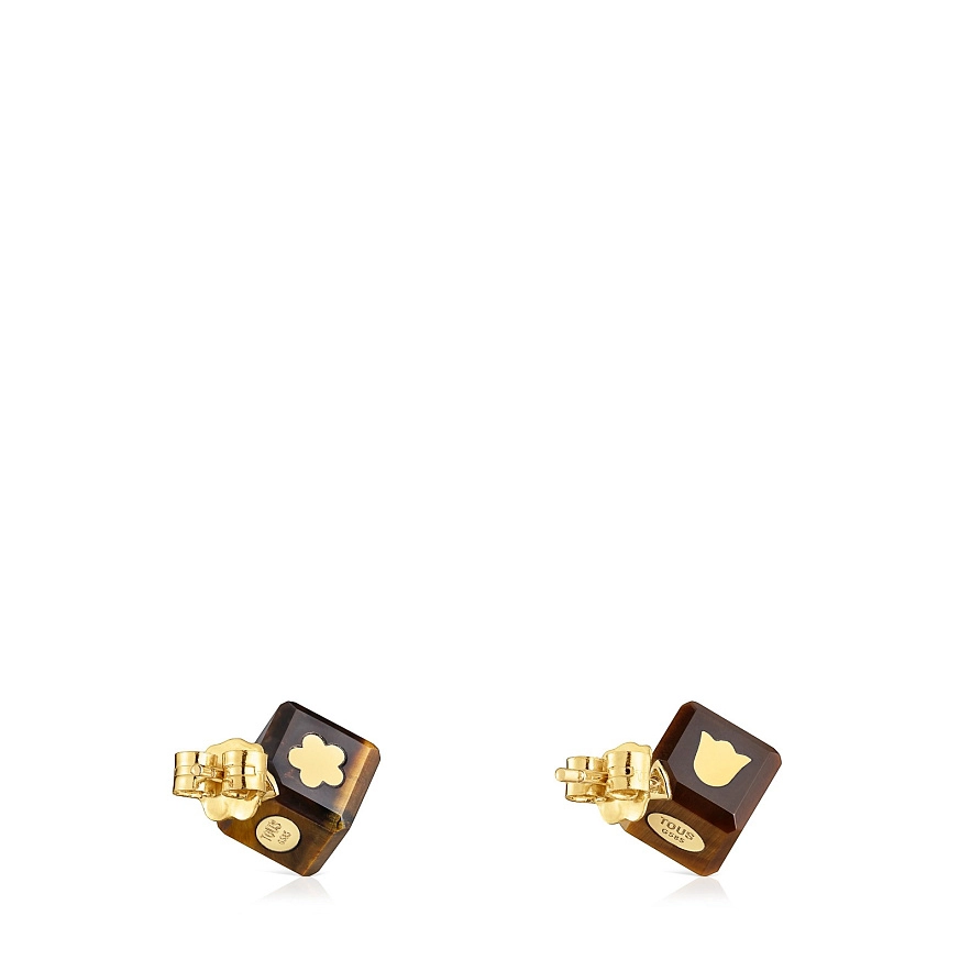 Серьги TOUS Cube с мотивами из желтого золота 14 карат и тигрового глаза в форме куба. Размер серег: 8 мм.