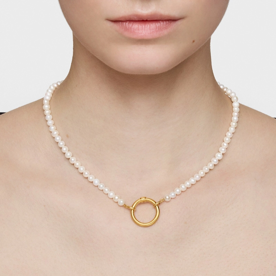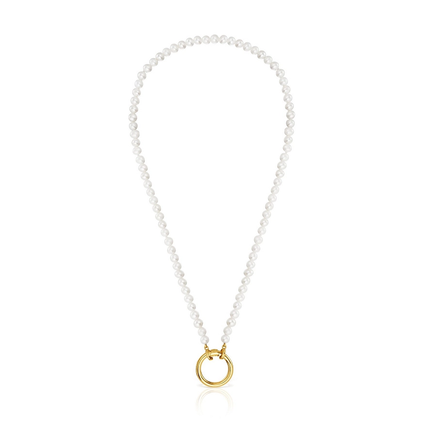 Колье TOUS Hold из серебра 925 пробы с покрытием Vermeil и культивированными пресноводными жемчужинами. Длина колье: 43 см. Размер кольца: 20 мм. Застежка кольца TOUS Hold.
