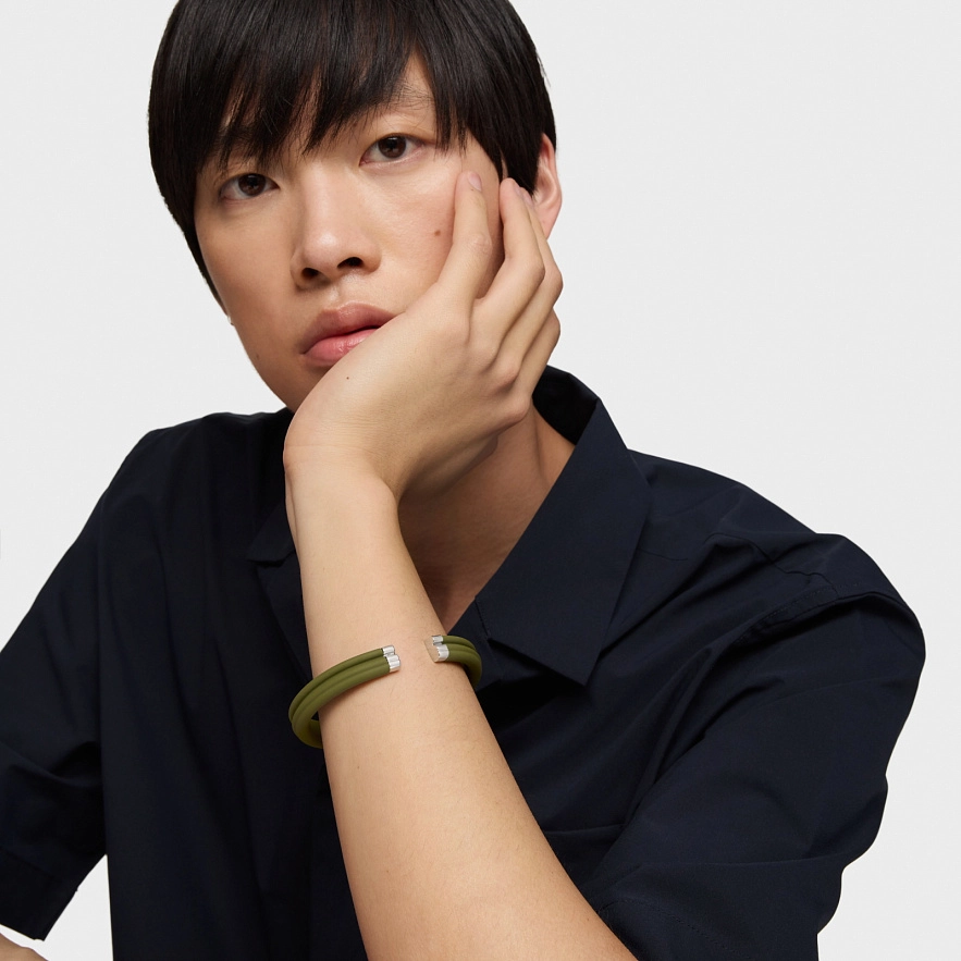 Браслет TOUS Man из нержавеющей стали и зеленой резины. Ширина браслета: 9,74 мм. Диаметр браслета: 10 мм.