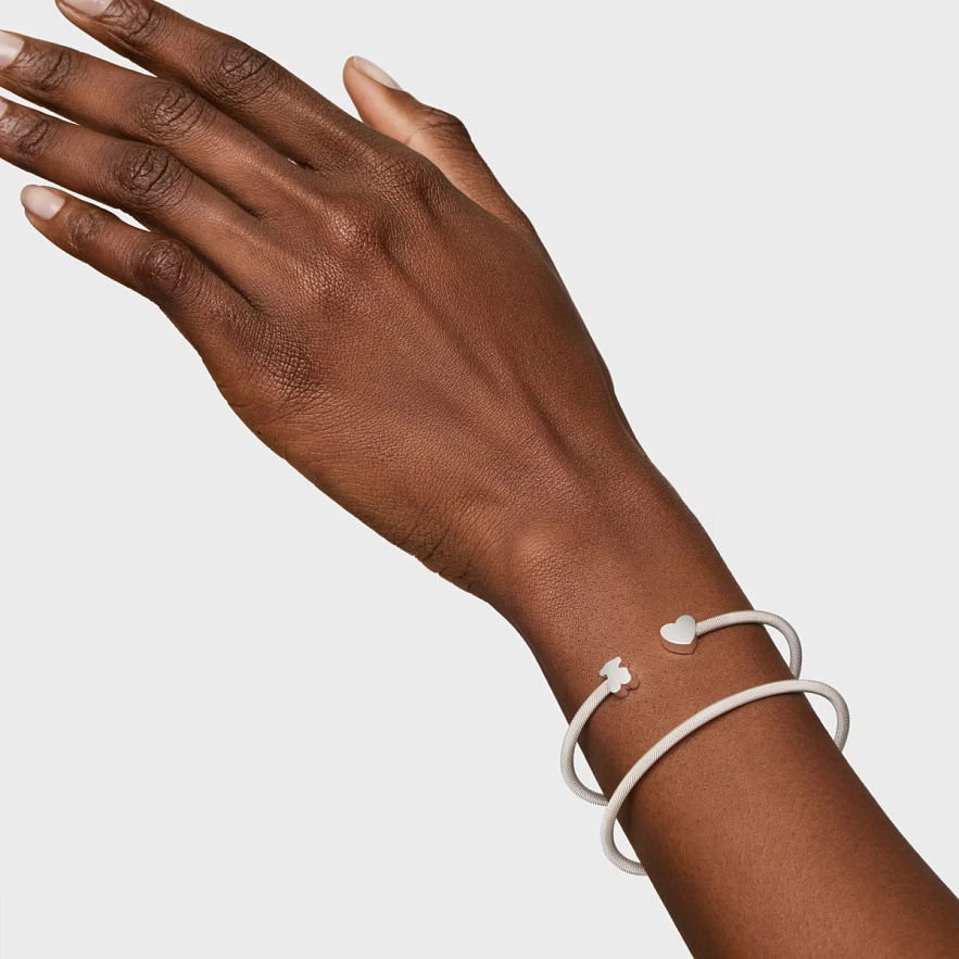 Браслет TOUS Icon Mesh двойной из стали и серебра 925 пробы с мотивами мишки и сердечка. Размер мотивов: 8 мм и 6,3 мм. Толщина браслета: 2,75 мм.