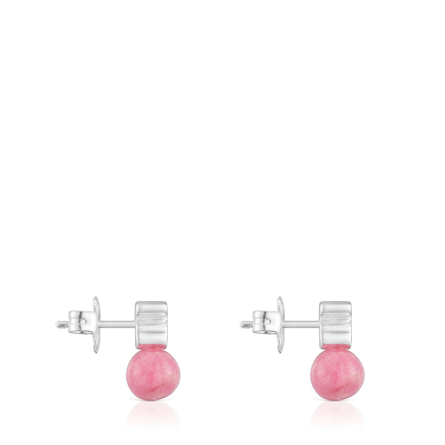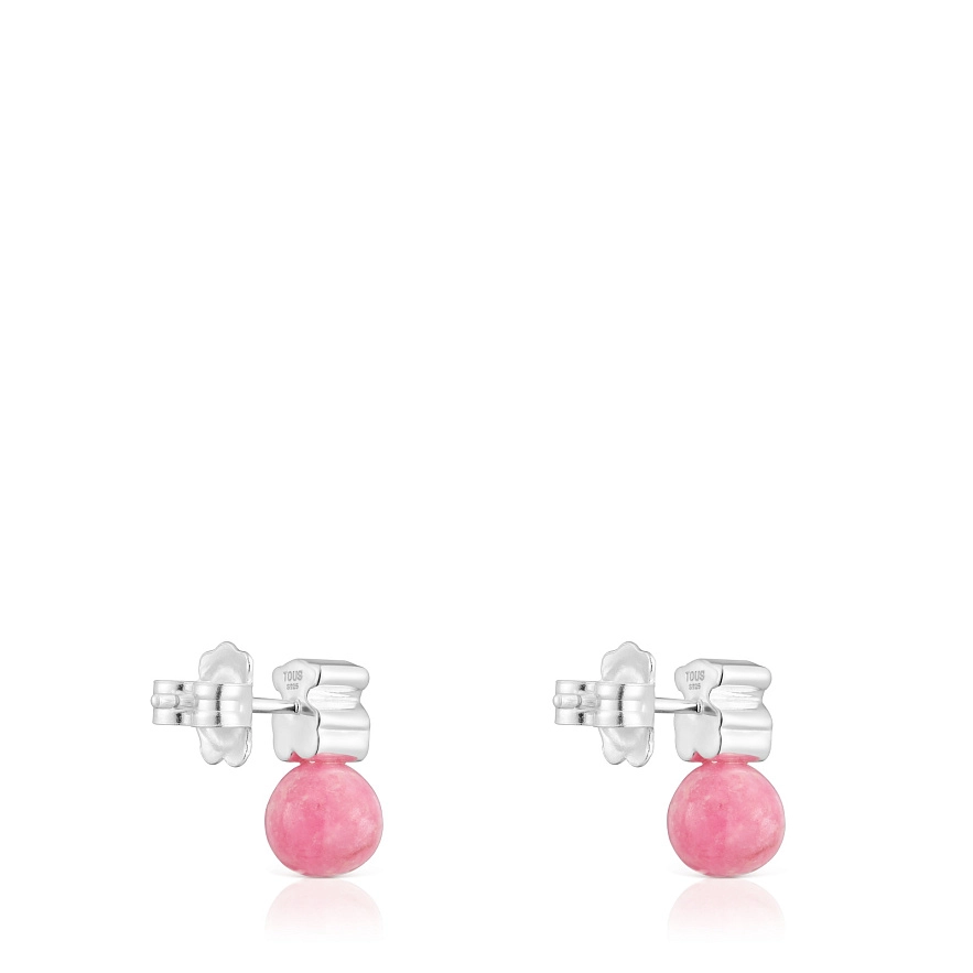 Серьги TOUS Icon Mesh из стали и серебра 925 пробы с мотивом медвежонка и шариком из родонита. Размер серег: 6 мм. Застежка-пусет.