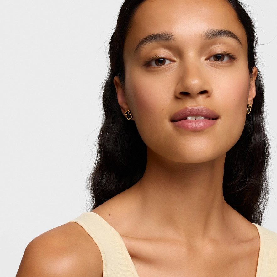 Серьги TOUS Galaxy из серебра 925 пробы с покрытием Vermeil и черным акриловым стеклом- метакрилат, в форме мишки. Размер серег: 11 мм.