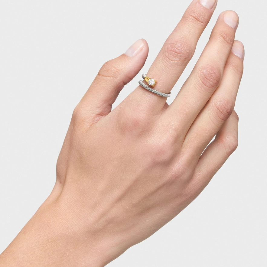 Кольцо TOUS Mesh LGD из 14-каратного желтого золота, нержавеющей стали и бриллиантов весом 0,21 карата в виде спирали. Качество бриллиантов: G/VS. Изделие создано с бриллиантами, выращенными в лаборатории.
