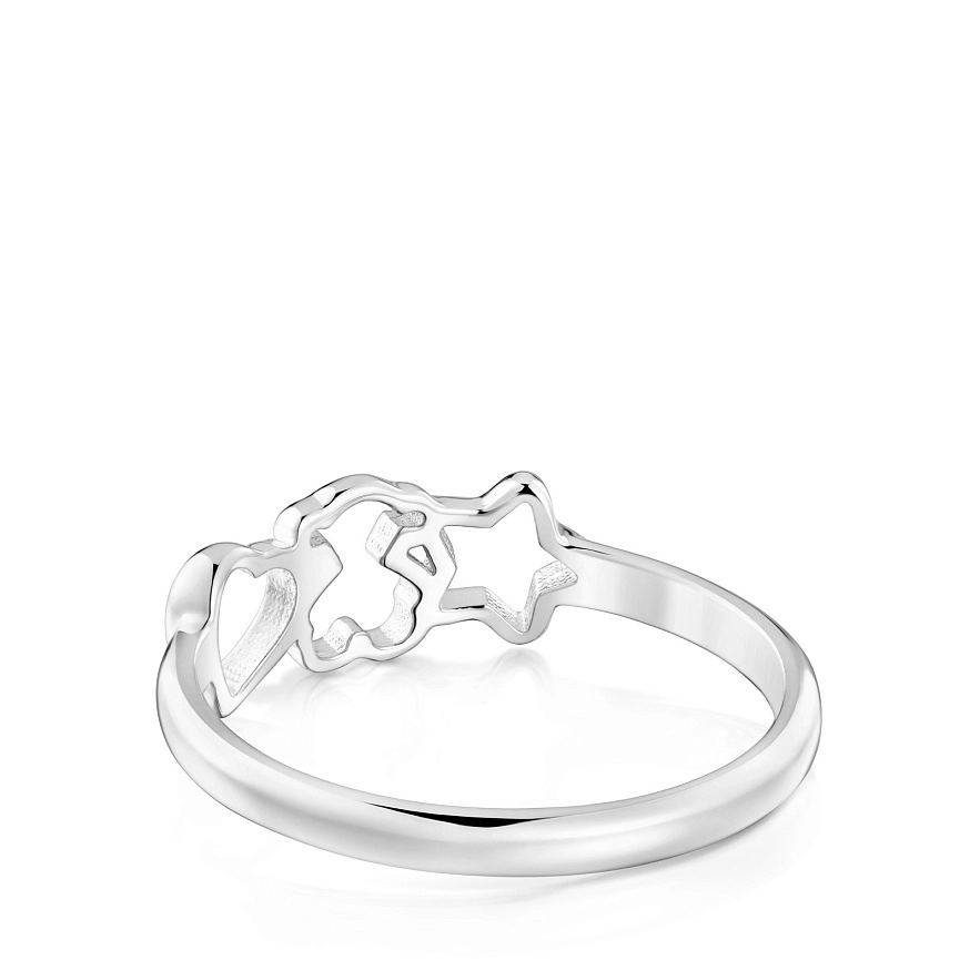 Кольцо TOUS Motivos из серебра 925 пробы с мотивами мишки, сердца и звезды.