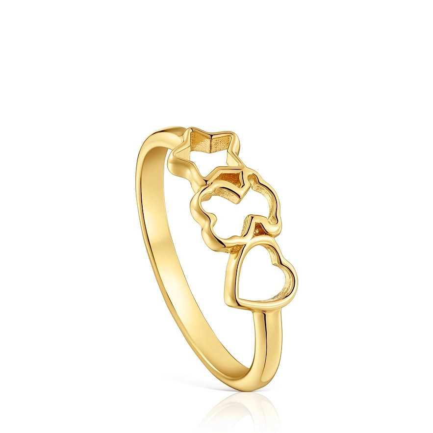 Кольцо TOUS Motifs из серебра 925 пробы с покрытием Vermeil с мотивами мишки, сердца и звезды.