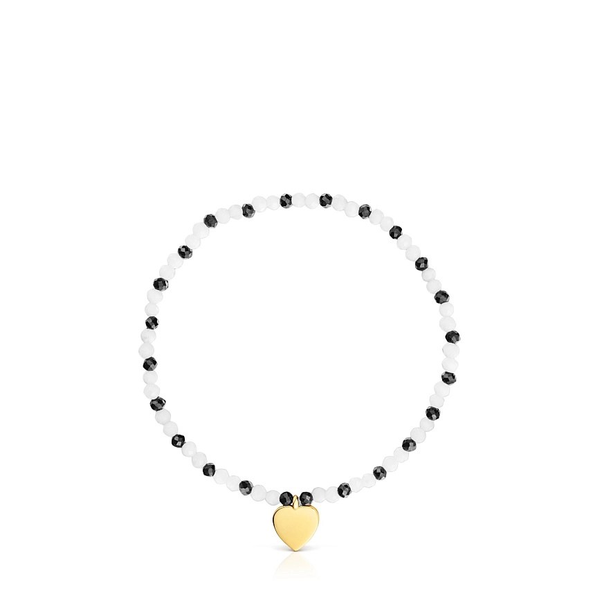 Браслет TOUS Motifs из серебра 925 пробы с покрытием Vermeil и огранёнными круглыми бусинами из халцедона, шпинелями и мотивом в виде сердца. Длина браслета: 17 см.