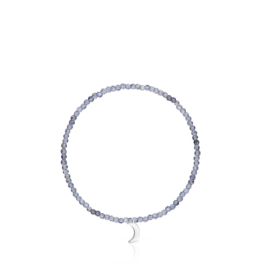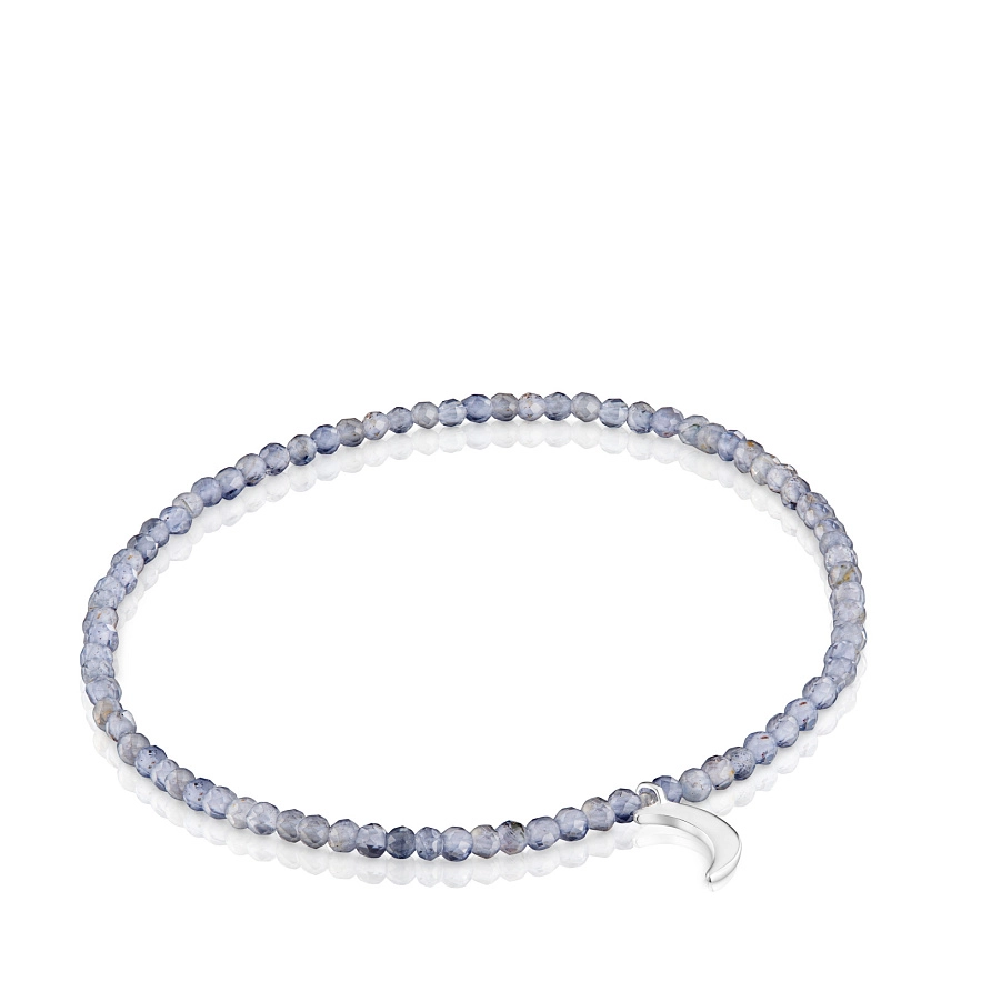 Браслет TOUS Motifs из серебра 925 пробы с огранёнными круглыми бусинами из иолита и мотивом месяца. Длина браслета: 17 см.
