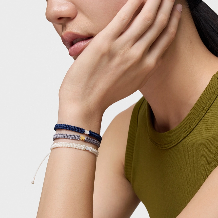 Браслет TOUS Motifs из серебра 925 пробы с мотивом мишки и зеленым нейлоном. Длина браслета: 17 см. Застежка-слайдер.