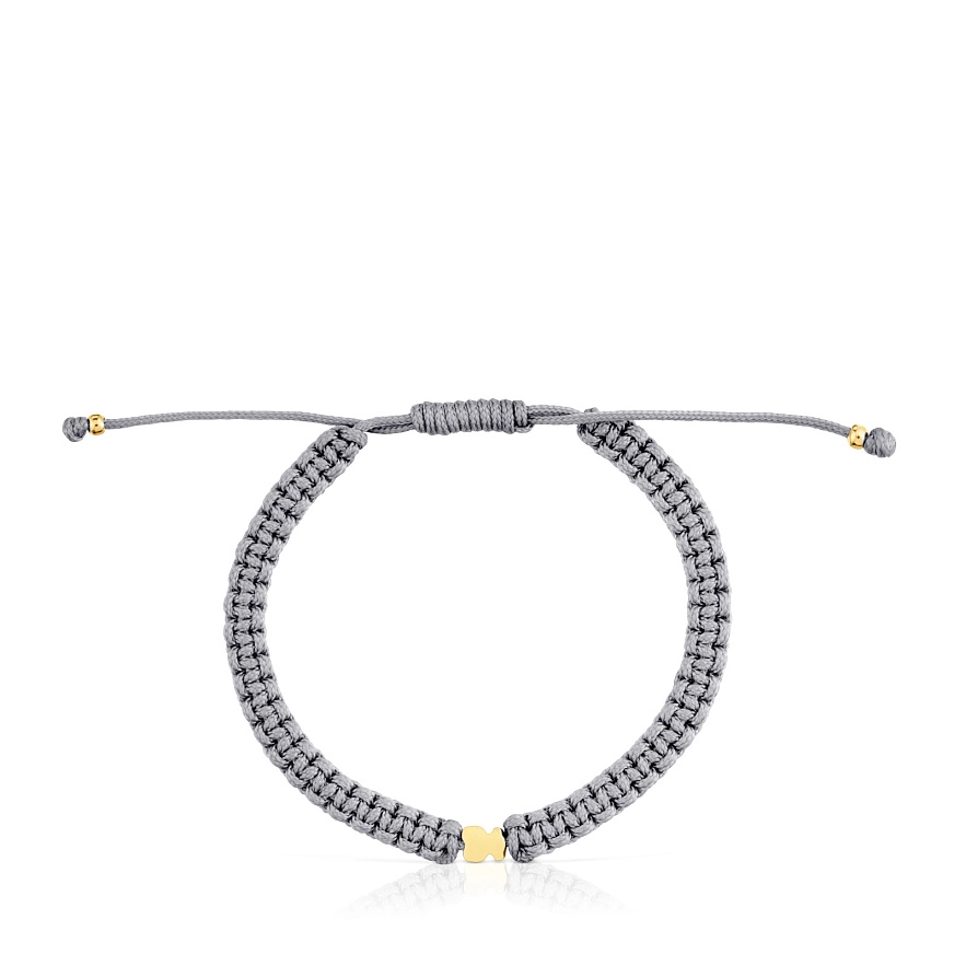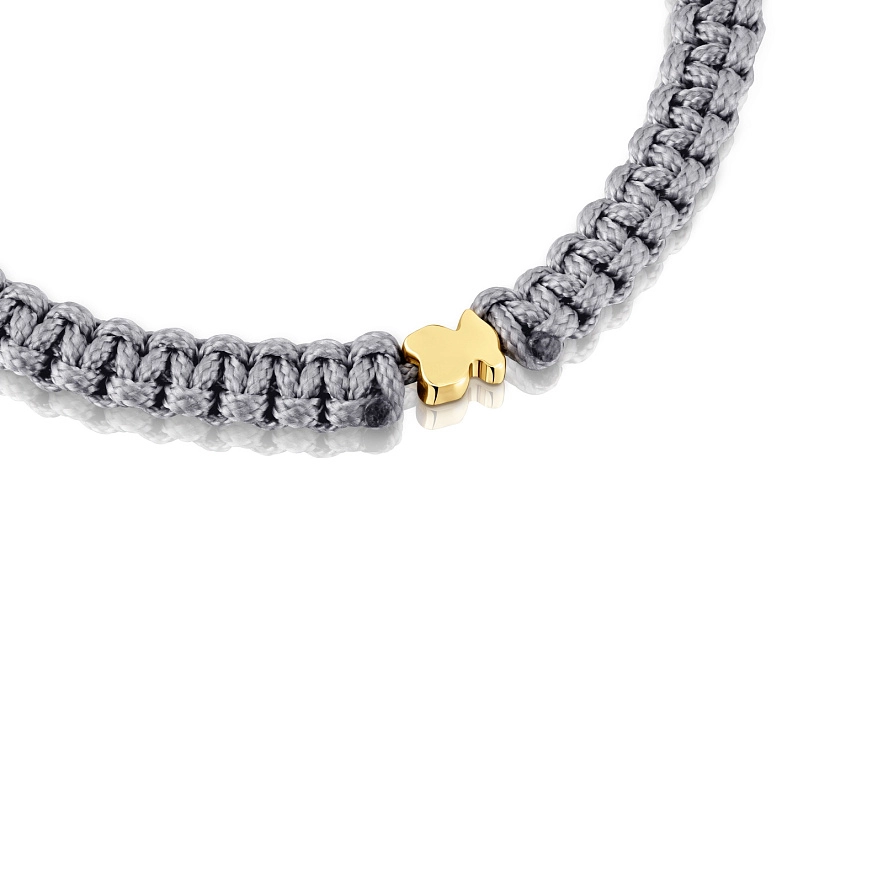 Браслет TOUS Motifs из серебра 925 пробы с покрытием Vermeil с мотивом медвежонка, на сером нейлоне. Длина браслета: 17 см. Застежка-слайдер.