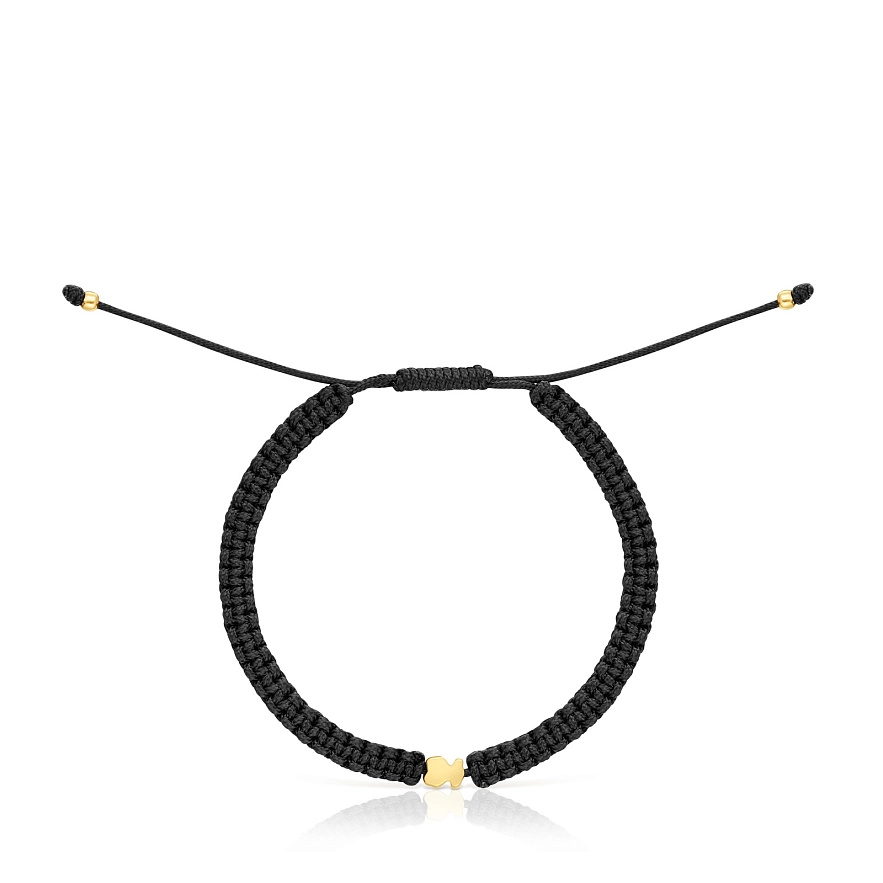 Браслет TOUS Motifs из серебра 925 пробы с покрытием Vermeil и мотивом медвежонка и черном нейлоне. Длина браслета: 17 см.