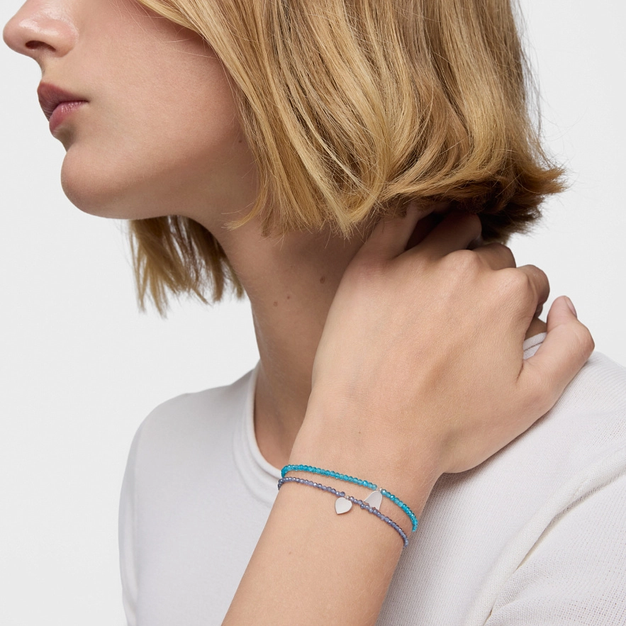 Браслет TOUS Motifs из серебра 925 пробы с огранёнными круглыми бусинами из иолита и мотивом сердца. Длина браслета: 17 см.