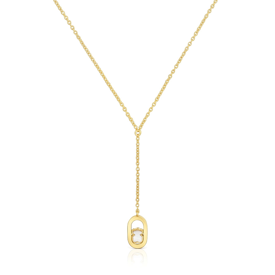Колье TOUS Camille из серебра 925 пробы с покрытием 18-каратного желтого золота и перламутра в форме фасетованого медведя. Длина колье: 45 см. Застежка-карабин. Изделие изготовлено из серебра 925 пробы с покрытием золота 18-23 карат толщиной 3 микрона. Такое качество гарантирует большую долговечность украшения.