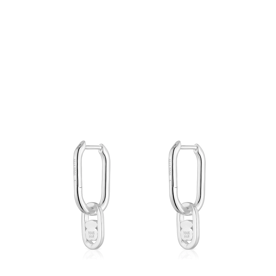 Серьги-кольца TOUS Camille из серебра 925 пробы и розового кварца в форме фасетированного мишки. Размер серег: 25 мм.