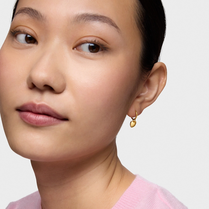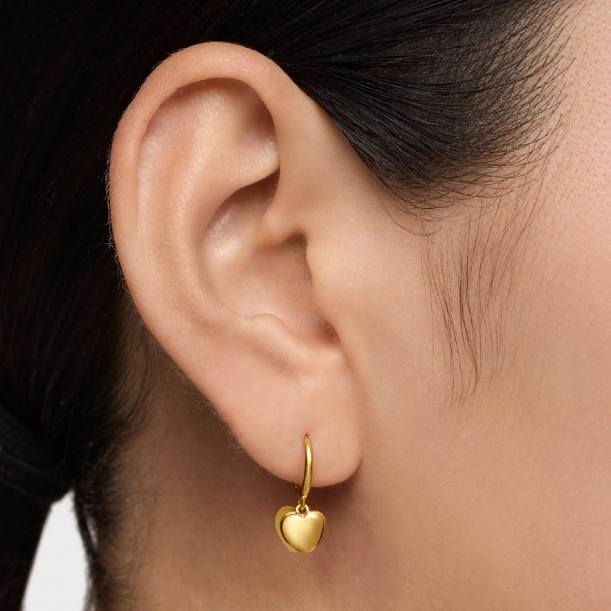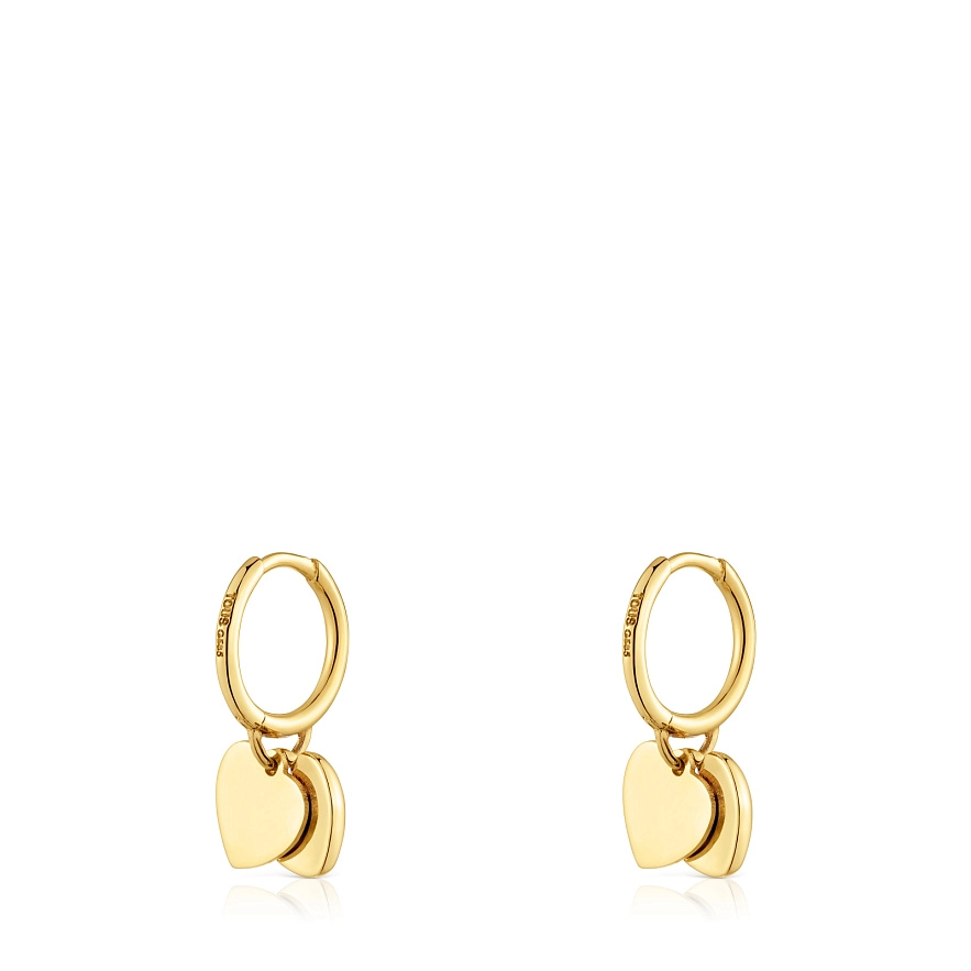 Серьги-кольца TOUS Flechazo из 14-каратного желтого золота с мотивом двойного сердца. Размер серег: 20 мм.