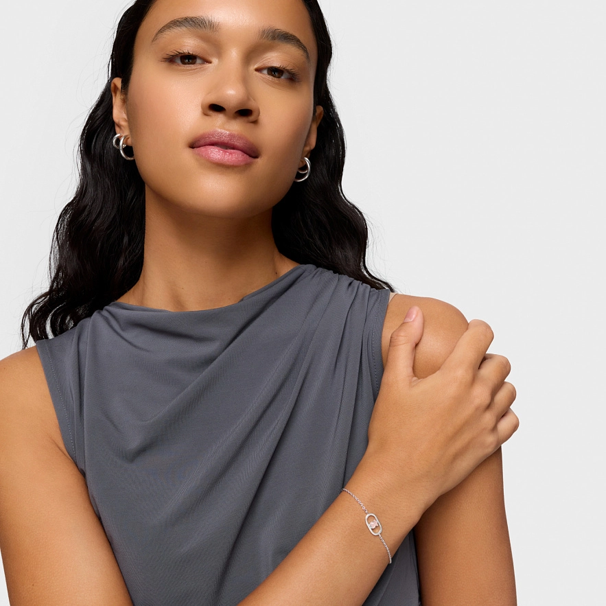 Браслет TOUS Camille из серебра 925 пробы с фацетированным мотивом в форме медведя с розовым кварцем. Длина браслета: 17,5 см. Застежка-лобстер.