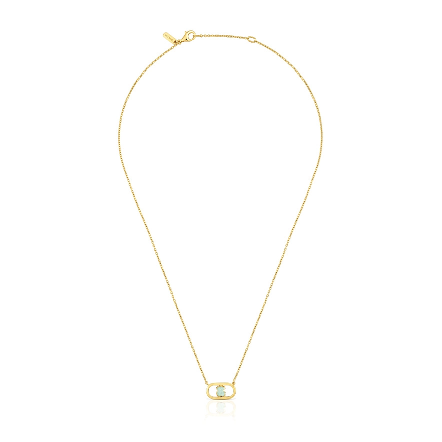 Намисто TOUS Camille зі срібла 925 проби з покриттям з 18-каратного жовтого золота та амазонітом у формі фасетованого ведмедя. Довжина намиста: 45 см. Застібка-карабін. Виріб виготовлений із срібла 925 проби з покриттям із золота 18-23 карат товщиною 3 мікрон. Така якість гарантує більшу довговічність прикраси.