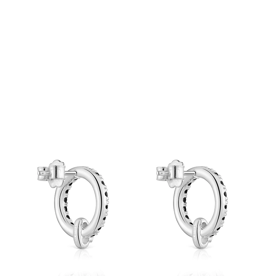 Серьги TOUS Straight из серебра с тремя кольцами и ограненными круглыми черными шпинелями. Размер серег: 14 мм. Застежка-пусет.