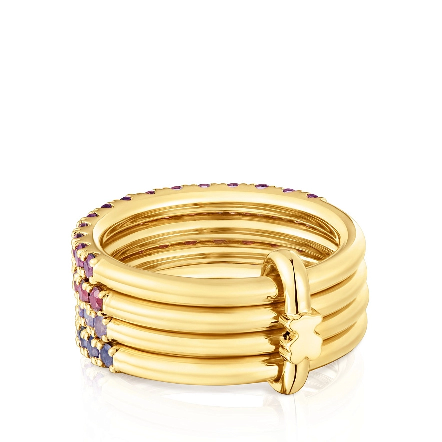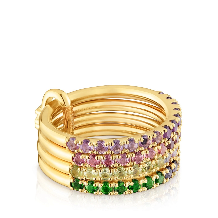 Кольцо TOUS Straight из серебра 925-й пробы с 18-каратным золотым покрытием, украшенное мотивом медведя и ограненными круглыми драгоценными камнями. Драгоценные камни: хромовый диопсид, родолит, танзанит, аметист, перидот и иолит. Размер мотива: 8 мм. Изделие изготовлено из серебра 925 пробы с 18-23-каратным золотым покрытием толщиной 3 микрона. Такое качество гарантирует большую долговечность ювелирных изделий.